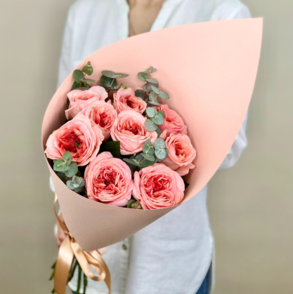 Букет из пионовидных роз и эвкалипта "Сара"